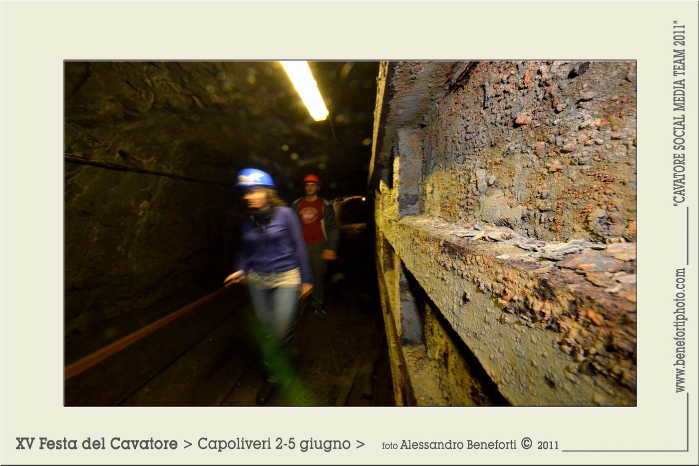 Si sta stretti e si passa in fila indiana, tra pozze e scalini piccoli, scassati e anche un po’ pericolosi. Filippo scende spedito, con il passo esperto: 27anni di miniera si sentono, anche quando si tratta di portare a spasso quattro blogger.
